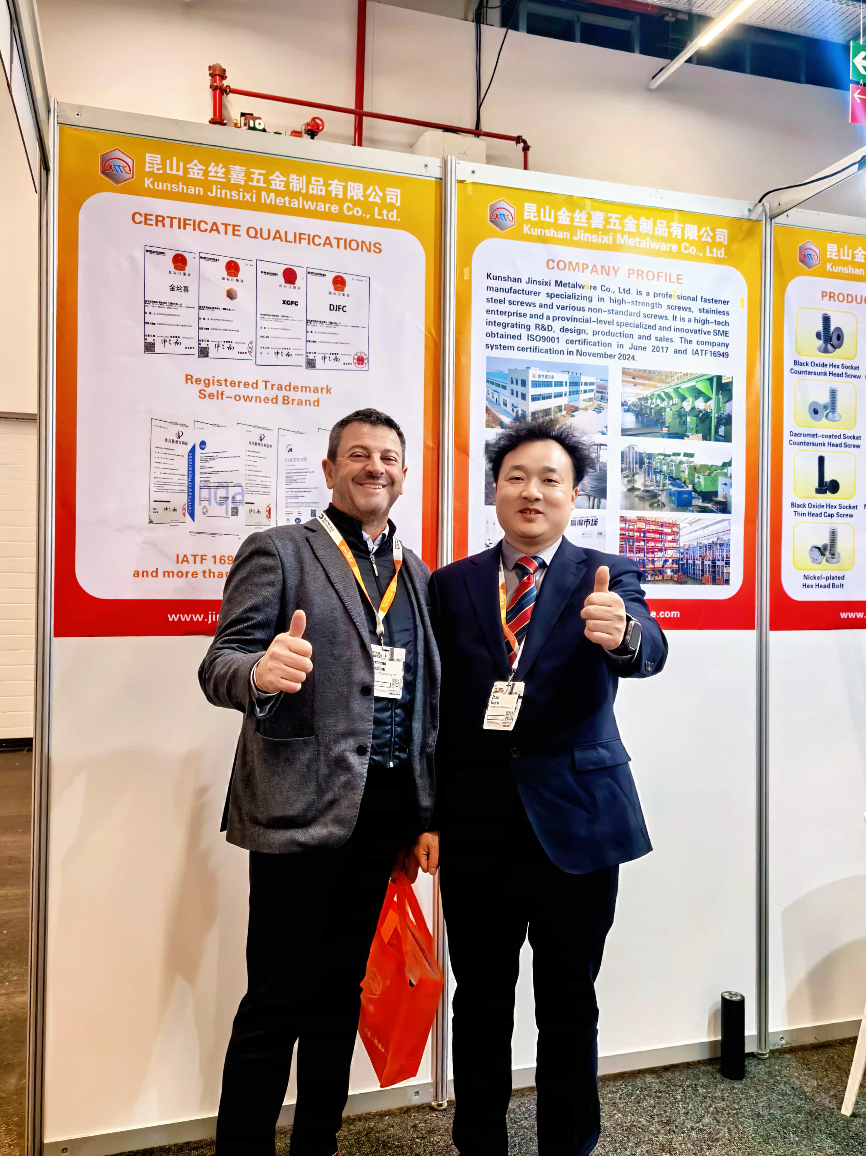 அதன் விரிவான பலத்தை முழுமையாக நிரூபிக்க,ஜின்சிக்ஸிகவனமாக வடிவமைக்கப்பட்ட சாவடியை அமைத்து, அதன் வரம்பை சிறப்பித்துக் காட்டுகிறதுஅறுகோண சாக்கெட்மற்றும்அறுகோணத் தலைகருப்பு ஆக்சைடு, நிக்கல் பூசப்பட்ட, துத்தநாகம் பூசப்பட்ட மற்றும் டாக்ரோமெட் பூசப்பட்ட பல்வேறு மேற்பரப்பு சிகிச்சை செயல்முறைகளைக் கொண்ட தயாரிப்புகள். இந்தத் தயாரிப்புகள் GB, DIN, ANSI, JIS மற்றும் ISO உள்ளிட்ட முக்கிய தரங்களுடன் இணங்குகின்றன, மேலும் அவை துருப்பிடிக்காத எஃகு, நடுத்தர கார்பன் ஸ்டீல் மற்றும் அலாய் ஸ்டீல் போன்ற பொருட்களிலிருந்து தயாரிக்கப்படுகின்றன. அனைத்து தயாரிப்புகளும் ISO 9001 மற்றும் IATF 16949 தர மேலாண்மை அமைப்புகளை கண்டிப்பாக கடைபிடிக்கின்றன, ஒவ்வொரு திருகு மற்றும் போல்ட் நம்பகமான மற்றும் நிலையான இயந்திர செயல்திறனை வழங்குவதை உறுதி செய்கிறது.
